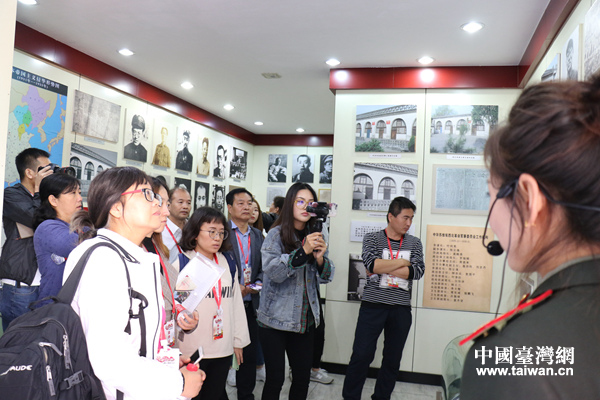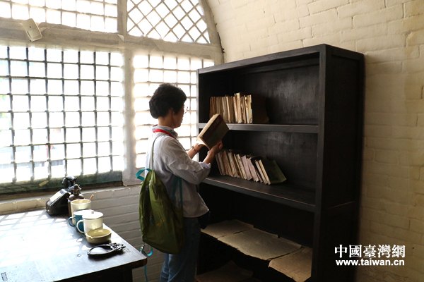 参访者阅读瓦家堡旧址书籍(中国台湾网 刘璐璐 摄)