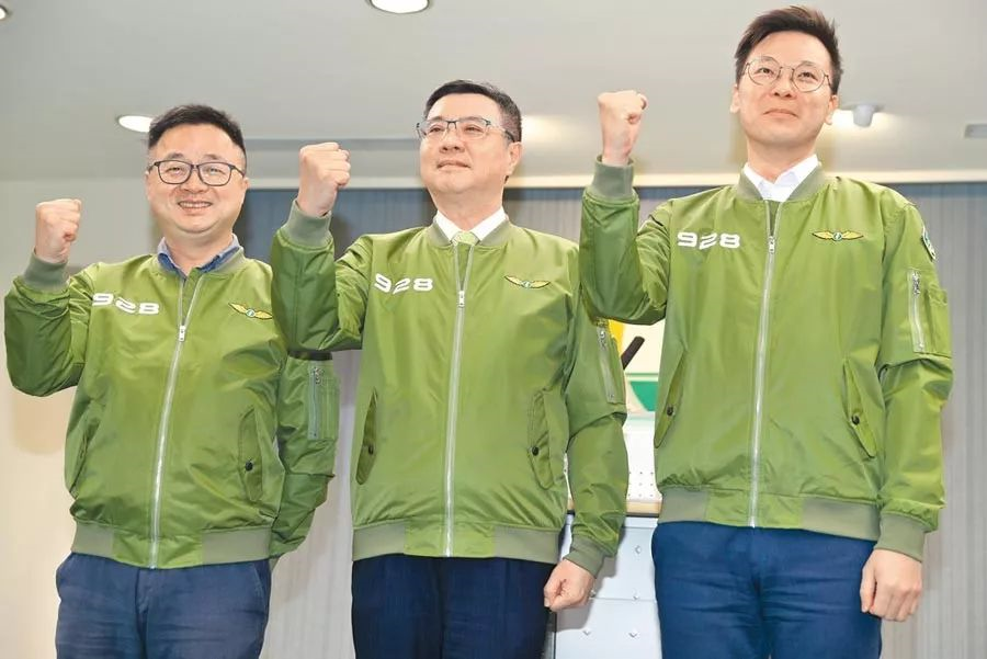 资料图:民进党主席卓荣泰(中)、秘书长罗文嘉(左)与副秘书长林飞帆(右)(图源:“中国时报”)