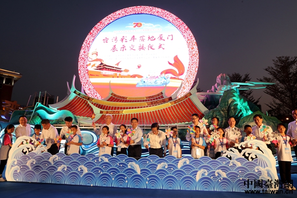 中国台湾网21日厦门讯(记者 李航)20日下午,由国务院台湾事务办公室、厦门市人民政府主办,厦门市人民政府台港澳事务办公室、集美区人民政府承办的台湾彩车落地厦门展示交接仪式在集美新城举行。中共中央台办宣传局局长马晓光在仪式上致辞,并将彩车钥匙交给厦门。厦门市委副书记陈秋雄、副市长韩景义参加仪式。