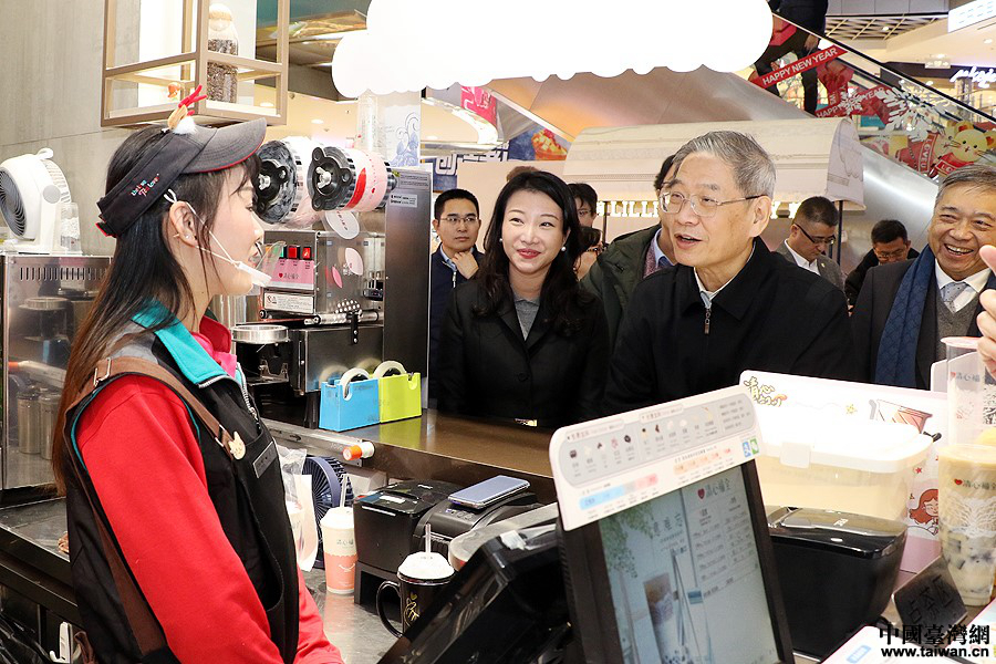 12月30日,海协会会长张志军在上海日月光中心,与在此经营店铺的青年亲切交流。(中国台湾网 何建峰 摄)