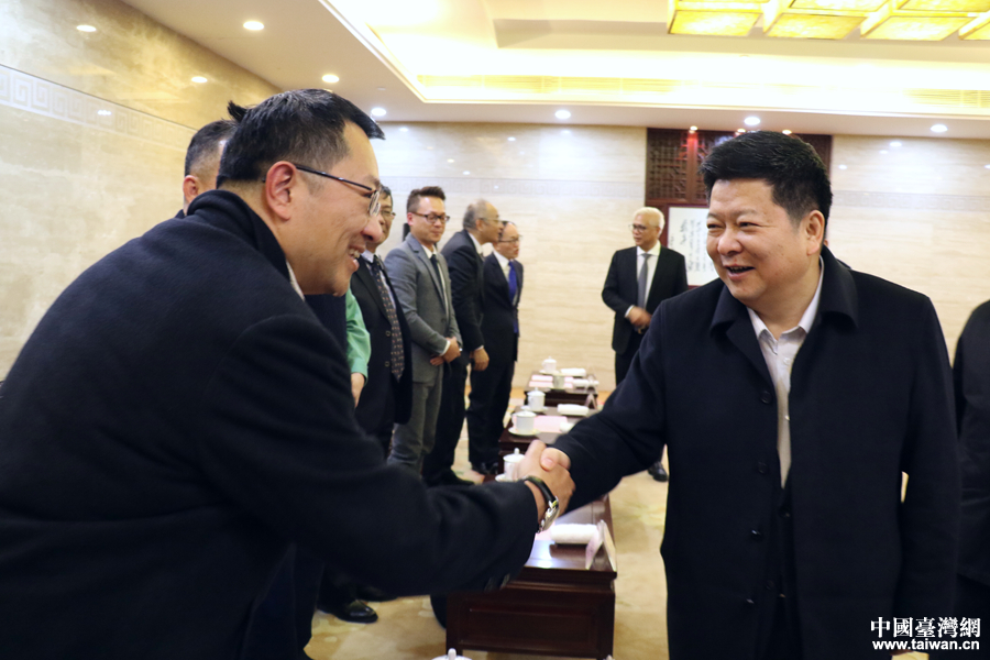 龙明彪与台商代表亲切握手。(中国台湾网 李宁 摄)