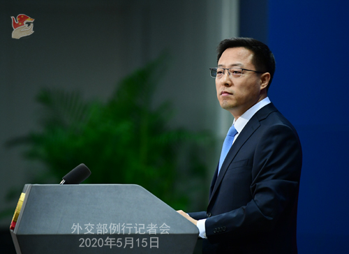 中国台湾网5月16日北京讯 据外交部网站消息,外交部发言人赵立坚15日主持例行记者会。