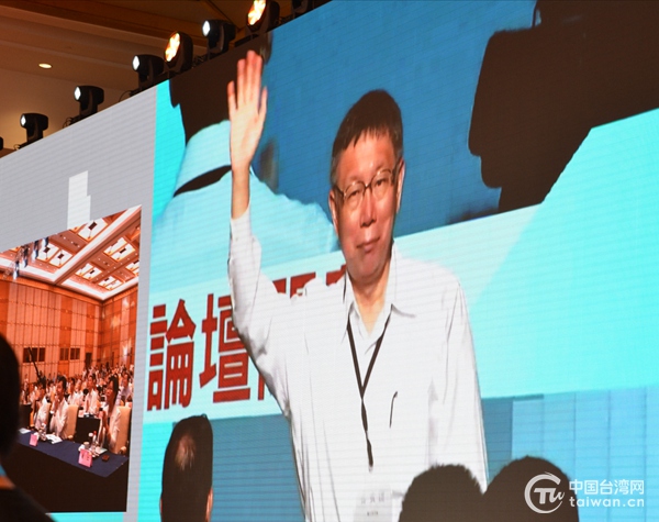台北市长柯文哲通过视频致意。(中国台湾网 发)