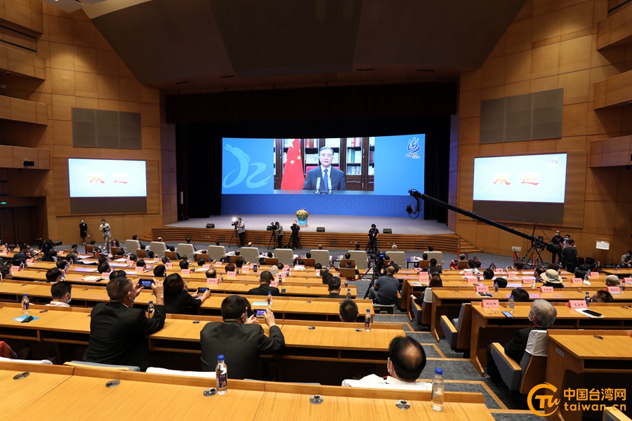 中共中央政治局常委、全国政协主席汪洋在大会上发表视频致辞。(中国台湾网 尹赛楠 摄)