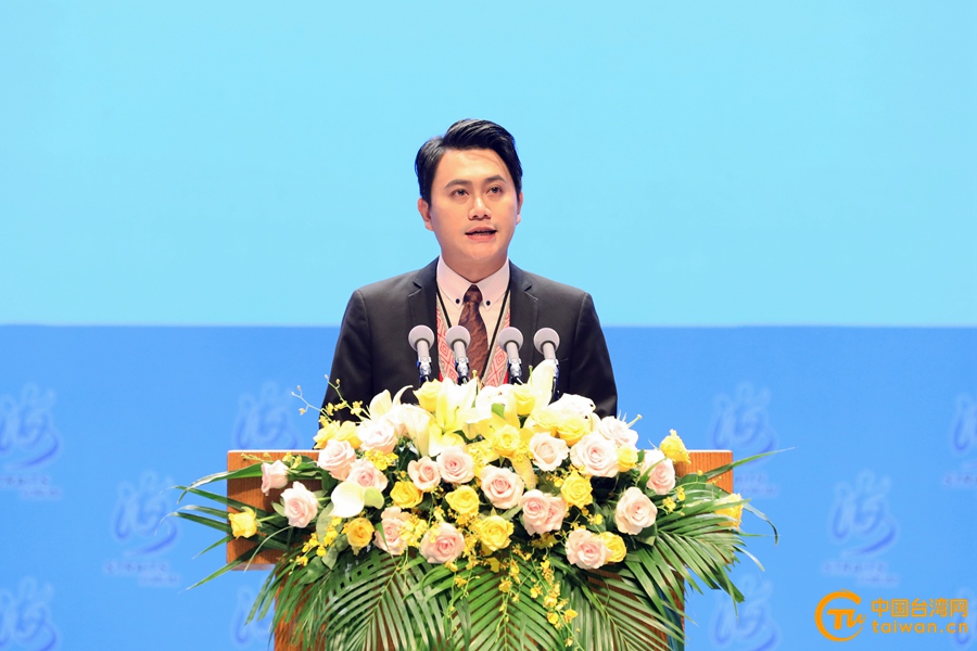台湾少数民族青年代表杨品骅在论坛大会上致辞。(中国台湾网 尹赛楠 摄)