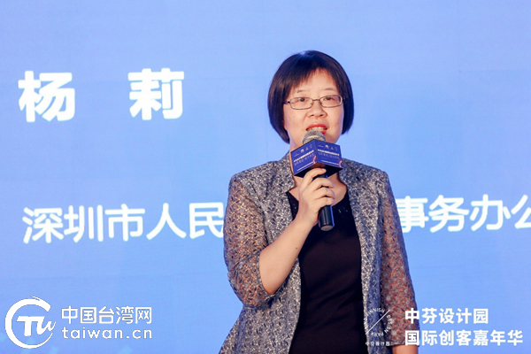 深圳市人民政府台湾事务办公室副主任杨莉在致辞中表示,中芬设计园作为中共中央台湾工作办公室和国务院台湾事务办公室认定的海峡两岸青年创业基地,不管是在空间还有平台、政策、利好,以及活动、交流、竞赛等等各个方面,都在为海峡两岸的青年创客创造更多更好的交流和服务平台。她号召海峡两岸青年创客,在这个创新创业的时代,用创意为生活插上更多隐形的翅膀,为深圳这座城市插上更加国际化友好的色彩。