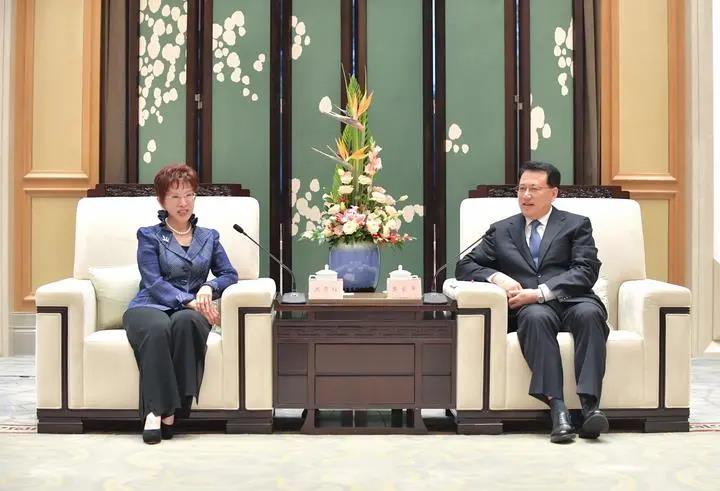 12日下午,省委书记袁家军在杭州会见了中国国民党前主席、中华青雁和平教育基金会董事长洪秀柱一行。
