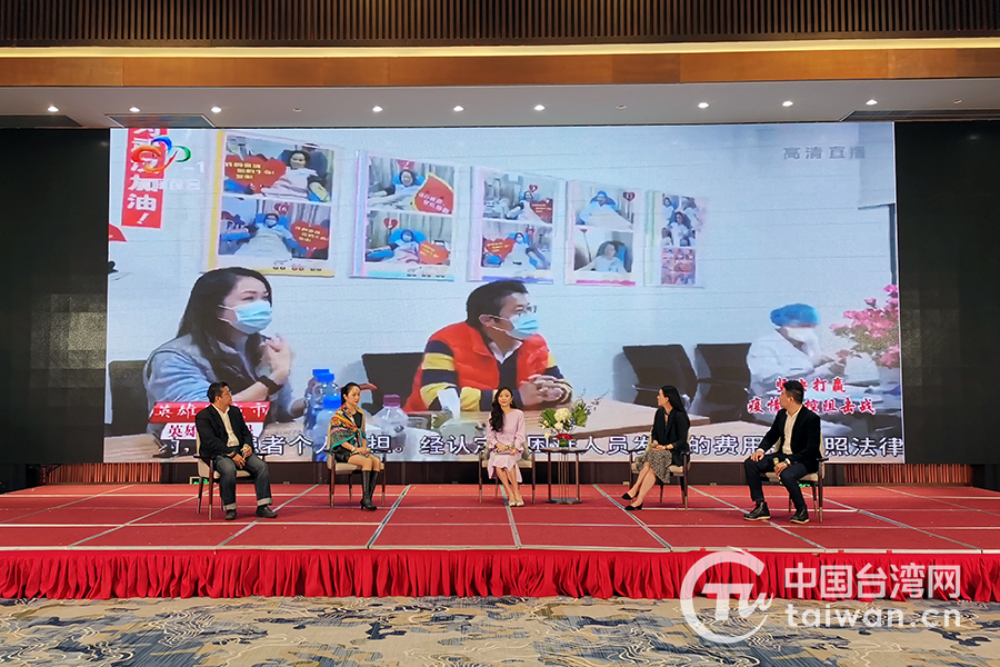 在“患难与共之义”主题沙龙上,嘉宾们分享了自己的抗疫经历。来自台湾的金彦豪在大陆工作已有20多年,妻子、儿女和岳父母都在武汉生活。今年1月底,原本打算带着家人回台湾过年的他,受新冠肺炎疫情影响,未能成行,随后被确诊,在武汉市台办等部门积极协调下,他顺利入院接受治疗。在他住院期间,妻子吴凌、儿女及岳父母也相继确诊,一家人被分别隔离进行治疗。在痊愈出院后,金彦豪感叹大陆给了他第二次生命,所以希望尽自己绵薄之力,挽救更多人的生命。在得知新冠肺炎康复者血浆可以用于治疗危重症患者后,妻子吴凌萌生捐献血浆的念头,并得到丈夫的积极支持。而卢国锋、张园园夫妻,则是在疫情期间积极响应政府号召,发挥台胞台企应尽的社会责任,紧急从国外进口制造口罩设备,24小时轮班全力生产口罩,用以支援疫情期间紧缺的物资需求,并捐献救灾防疫物资给予当地学校团体。