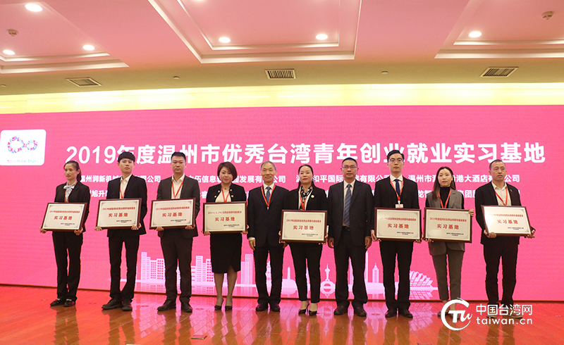 论坛举行了2019年度温州市优秀台湾青年创业就业实习基地授牌仪式。(中国台湾网 普燕 摄)