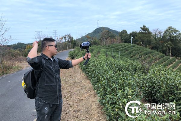 台湾青年创作人森哥在安吉鲁家村白茶园拍摄VOLG(中国台湾网 符海川 摄)