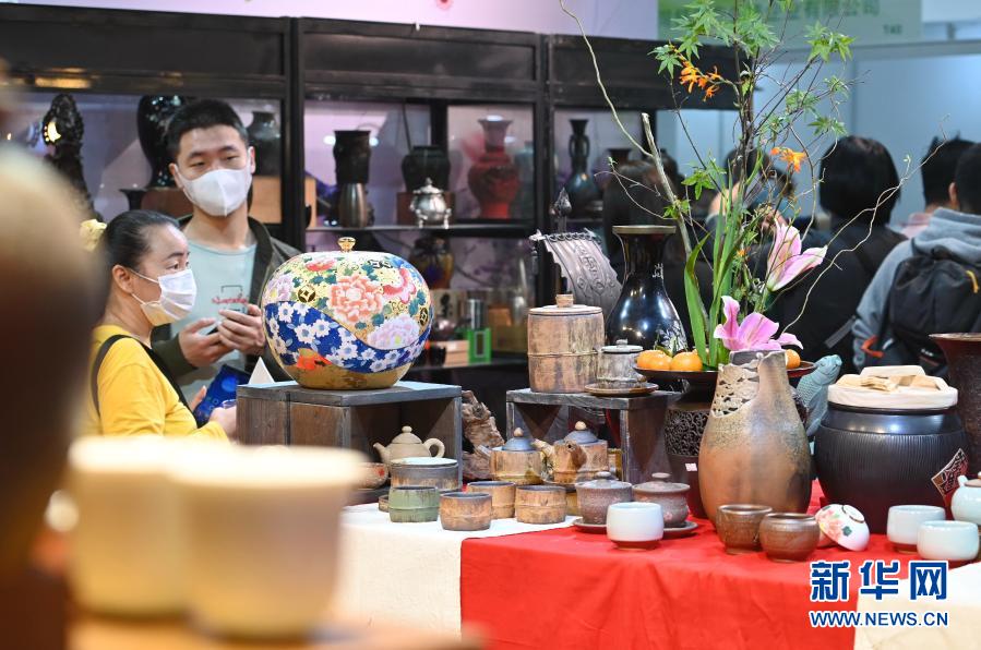 这是11月16日在第十四届海峡两岸茶业博览会上拍摄的陶瓷艺术品展位。