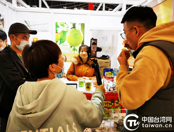 线上直播环节安排主播现场逛展、试吃,帮台农直播带货。(中国台湾网 王思羽 摄)