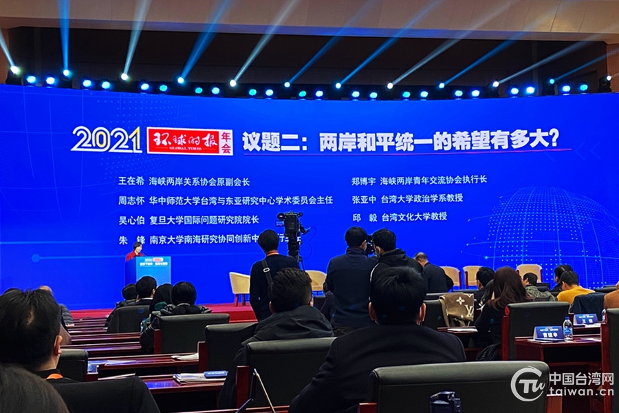 2021《环球时报》年会2020年12月5日在北京举办。图为年会现场,“两岸和平统一的希望有多大?”成为本次年会最受关注的议题之一。(中国台湾网 李柏涛 摄)