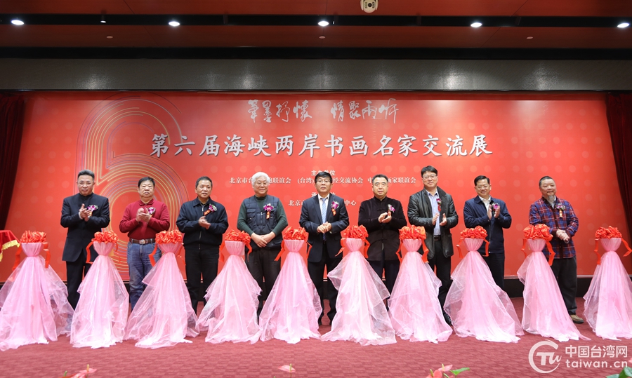 中国台湾网12月11日讯 (记者 普燕)由北京市台湾同胞联谊会、中国书画家联谊会、台湾中华文经交流协会联合主办的“笔墨抒怀·情聚两岸——第六届海峡两岸书画名家交流展”10日上午在北京台湾会馆开幕,共展出两岸知名书画家作品60幅。
