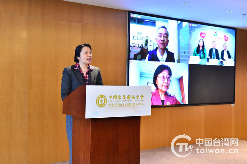中国宋庆龄基金会港澳台事务部部长陈爱民致辞。(中国台湾网发)