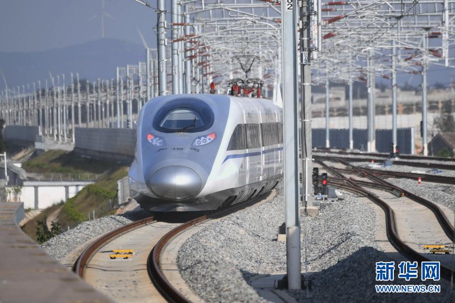 12月26日,G5322次列车驶出福平铁路平潭站。新华社记者 林善传 摄