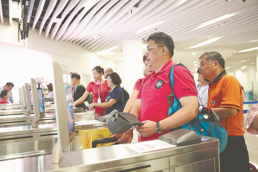 台胞在厦门五通客运码头准备检票登船。 (摄于2019年6月3日)