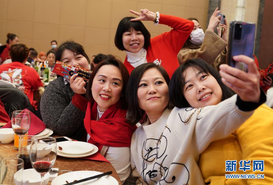 1月9日,在上海台青迎新联谊晚会现场,台青自拍留念。
