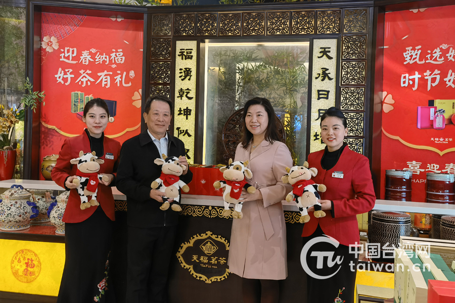 2月10日北京市台办副主任于凤英(右二)带队到天福茗茶文化馆走访慰问。(中国台湾网 吴怡 摄)