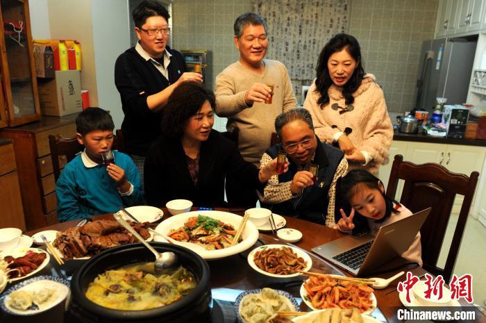 11日,大年三十晚上6点整,台商曾文子一家人开启他们在大陆“别样”的团圆饭,并与台湾亲朋好友视频连线相互传递新年祝福,一起“线上围炉”。