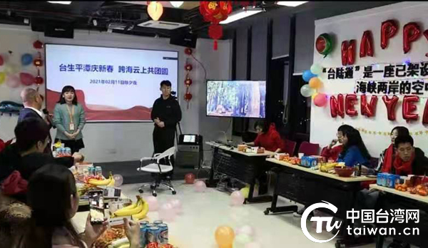 中国台湾网2月13日平潭讯 2月11日,农历大年三十当晚,一场名为“台生平潭庆新春 跨海云上共团圆”的联欢活动在平潭台创园“台陆通”公司举行。13位来自大陆双一流大学的台湾青年学子及“台陆通”台籍员工在公司工作人员陪同下,一同过了一个充满欢歌笑语的温馨年夜。