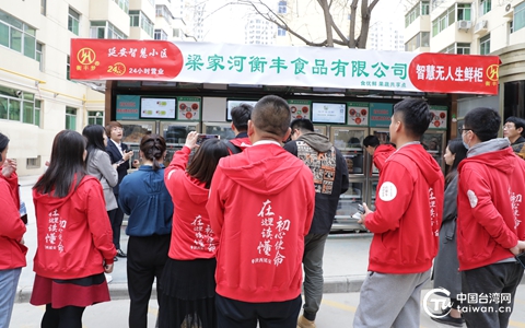社区智慧无人生鲜柜,可以让小区居民不出小区就能用扫码买菜。(中国台湾网 李杰 摄)