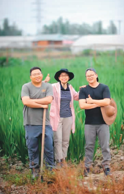 何耀顺(左)和团队成员在佛山贤鲁岛的台湾新农业示范基地耕作。