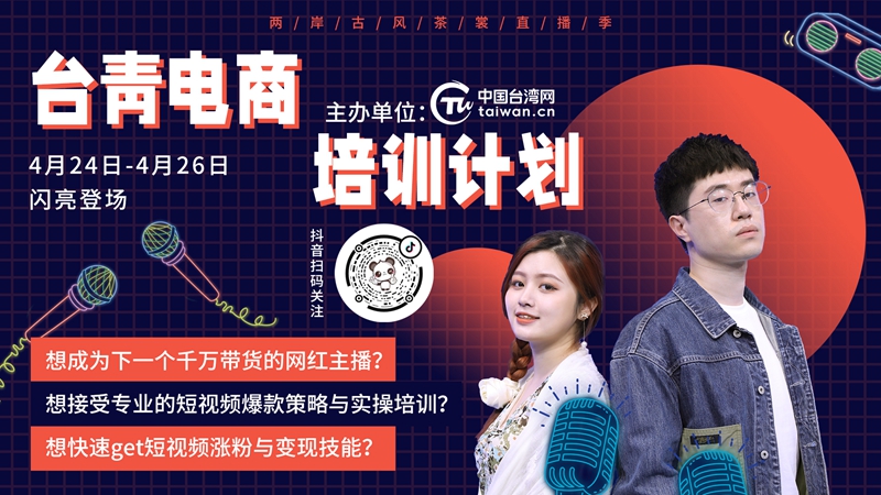 中国台湾网4月24日北京讯 (记者 张亚静)“品香茗、秀汉服、尝美食”,4月24至28日,中国台湾网举办海峡两岸古风茶裳直播季活动。为了让台湾青年更好地了解大陆电商发展情况,本次活动还专门安排了电商培训课程。