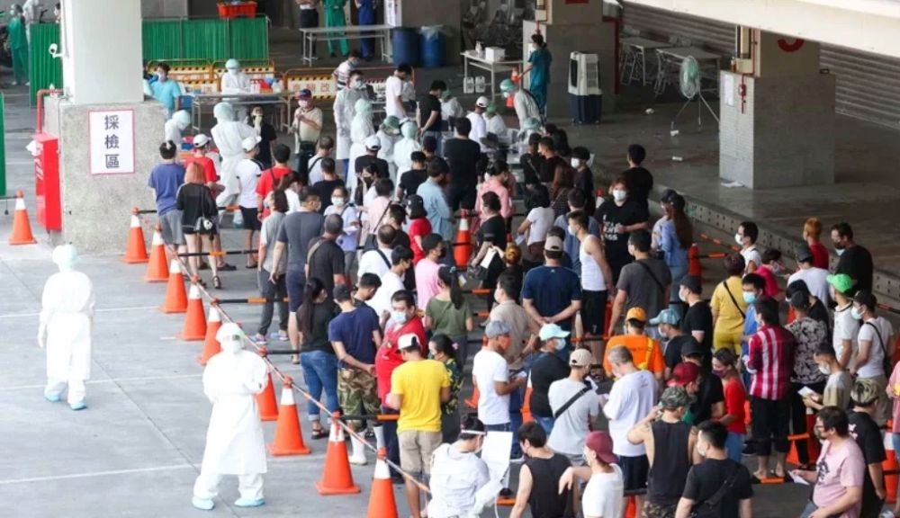 台湾民众大排长龙进行筛检。图片源自台湾中时电子网