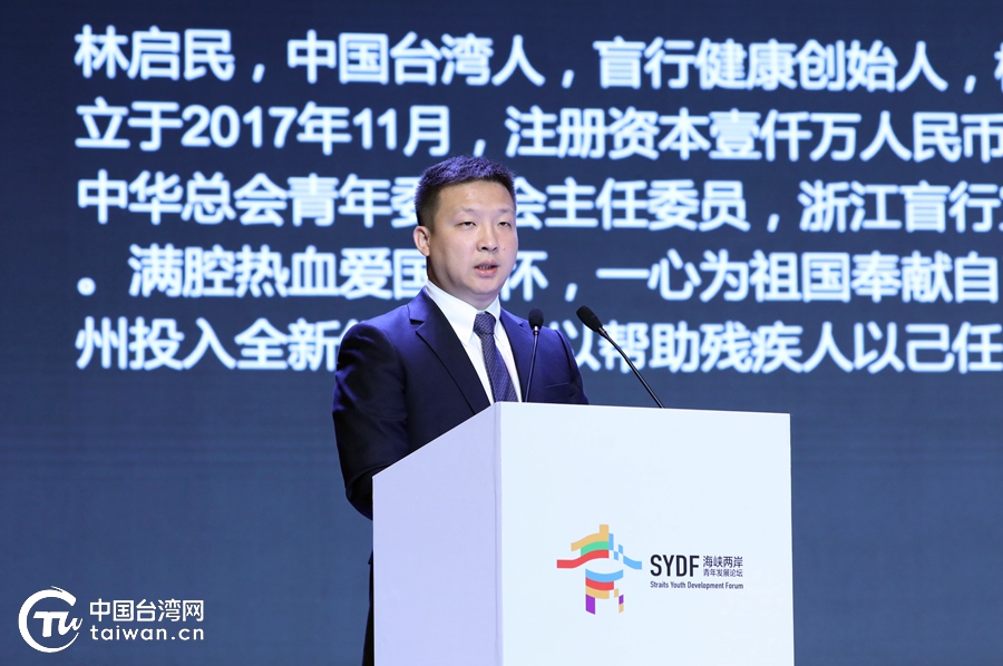 在浙创业台青林启民作主旨演讲。(中国台湾网 尹赛楠 摄)