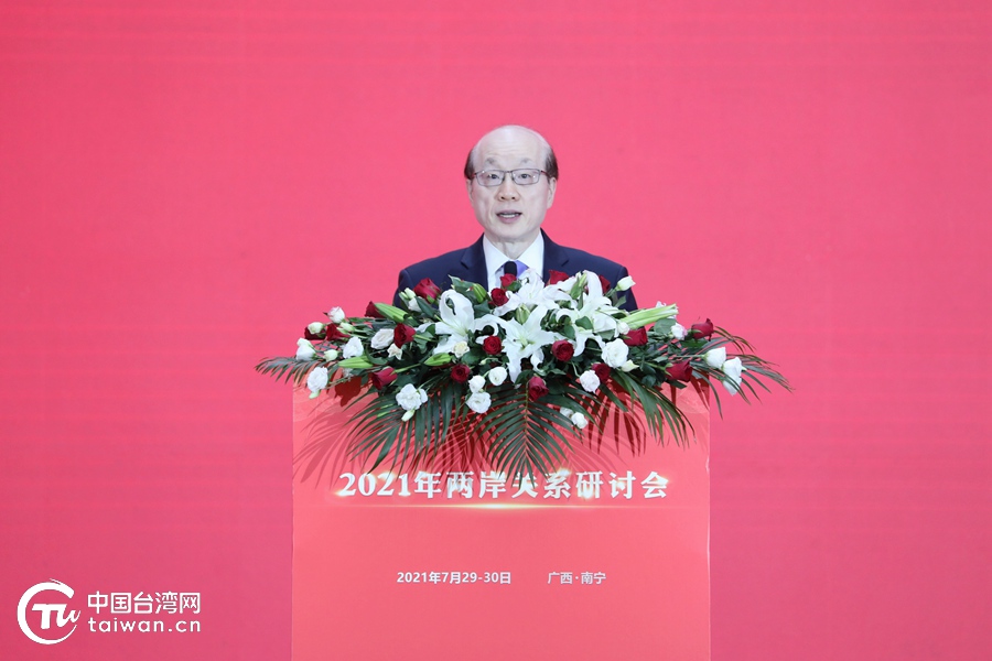 中国台湾网7月29日南宁讯 (记者 尹赛楠)盛夏的邕城,道路在探索中清晰,选择在碰撞中坚定,情感在交流中升温。7月29日,由海峡两岸关系研究中心主办的2021年两岸关系研讨会在广西南宁开幕。活动以线上线下相结合的方式,吸引了来自海峡两岸的100余位专家学者以及长期致力于两岸关系研究的人士与会。中共中央台办、国务院台办主任刘结一,中共广西壮族自治区党委副书记、广西壮族自治区主席蓝天立,中国国民党前主席、中华青雁和平教育基金会董事长洪秀柱出席研讨会开幕式并致辞。