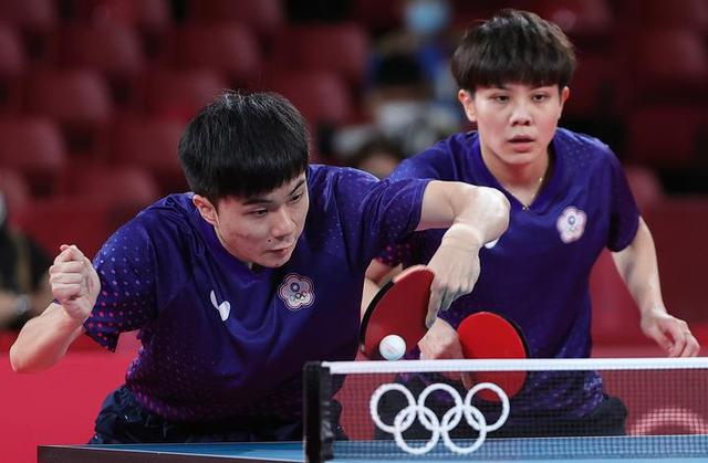 7月26日,林昀儒(前)/郑怡静在比赛中。当日,在东京奥运会乒乓球混双铜牌战中,中国台北组合林昀儒/郑怡静以4比0战胜法国组合莱贝松/袁嘉楠,获得季军。新华社记者 王东震 摄