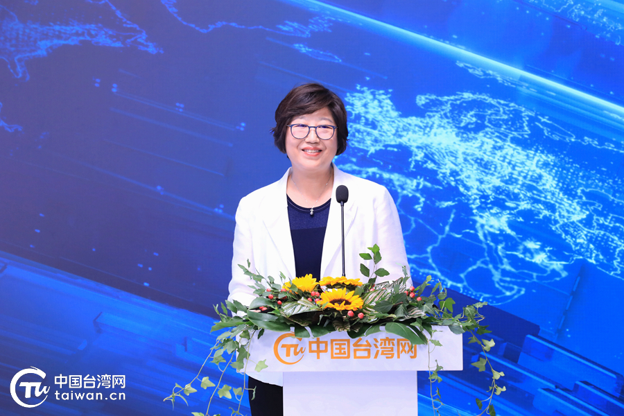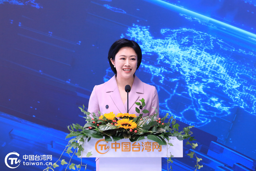中国台湾网副总经理、海峡两岸互联网交流委员会副秘书长张娜在签约仪式上致辞。(中国台湾网 尹赛楠 摄)