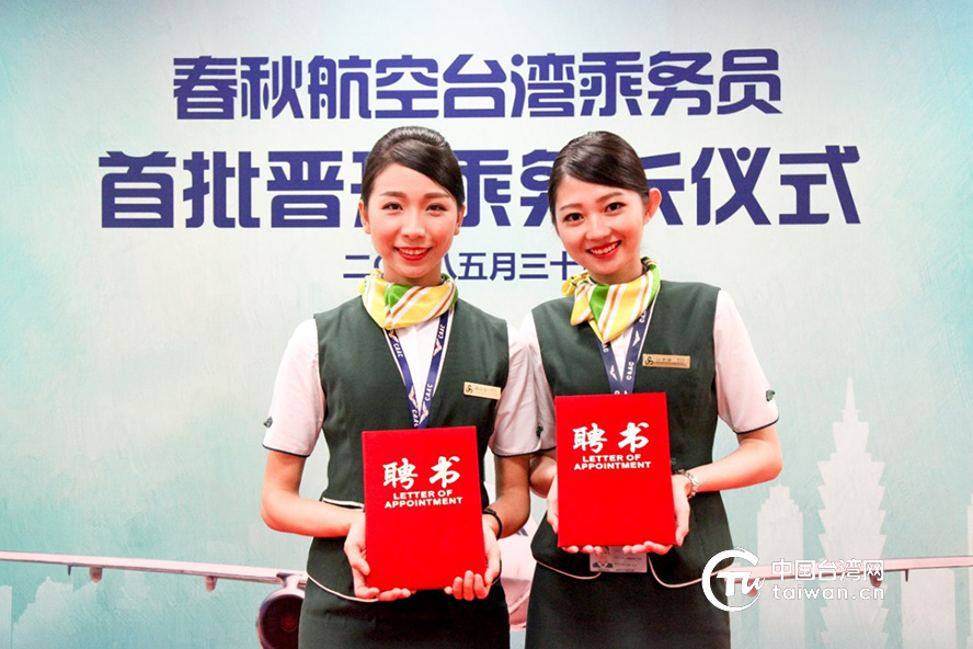 在第68届世界小姐中国航空赛区暨2018中国最美空姐大赛上,春秋航空台籍乘务员小柯一展风采并荣获十佳选手和最佳上镜奖。2018年台湾大学生就业分享会上,春秋航空台籍乘务员小叶自豪地向台湾大学生们分享自己在大陆工作和生活的点滴,讲述春秋航空给她带来的这段愉悦的人生经历。作为第一家在高雄大型招聘会现场开展乘务员招聘面试的航空公司,春秋航空组织优秀的台籍乘务长全程参与,她们用自己的蓝天故事鼓舞着大学生们投身民航事业。