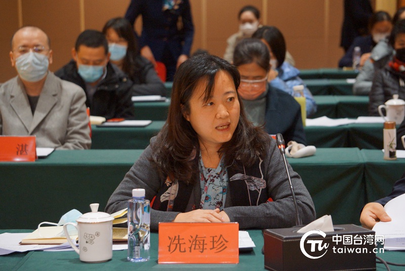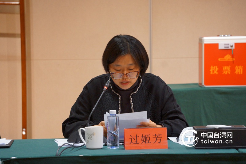 台盟北京市委机关干部代表、社会服务处副处长过姬芳发言。