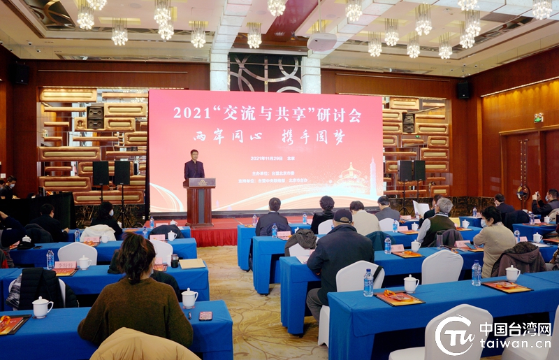 中国台湾网11月29日北京讯 上午,台盟北京市委2021“交流与共享”研讨会在京举行,会议主题为“两岸同心 携手圆梦”。全国人大常委、北京市政协副主席、台盟北京市委主委、北京社会主义学院院长陈军致开幕辞,台盟中央联络部部长张骏致辞,台湾中华民族发展基金会董事秘书长朱瓯代表台湾嘉宾通过视频致辞。中共北京市委统战部、北京市台办、北京联合大学台湾研究院等有关单位和台湾部分政党、社团代表人士,从事两岸关系研究的专家学者,以及在京台盟盟员和台胞代表出席研讨会,数十位台湾嘉宾通过视频观看。