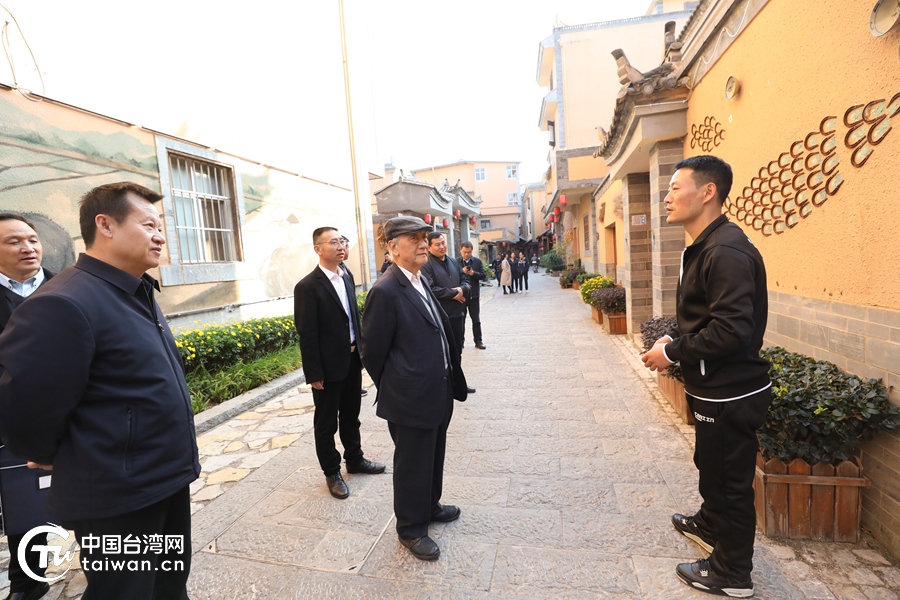 郁慕明一行在玉溪市澄江市广龙小镇进行参访。(中国台湾网 尹赛楠 摄)