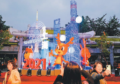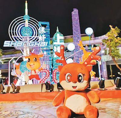 上海旅游节吉祥物“小鹿乐乐”也随彩灯来到台北。