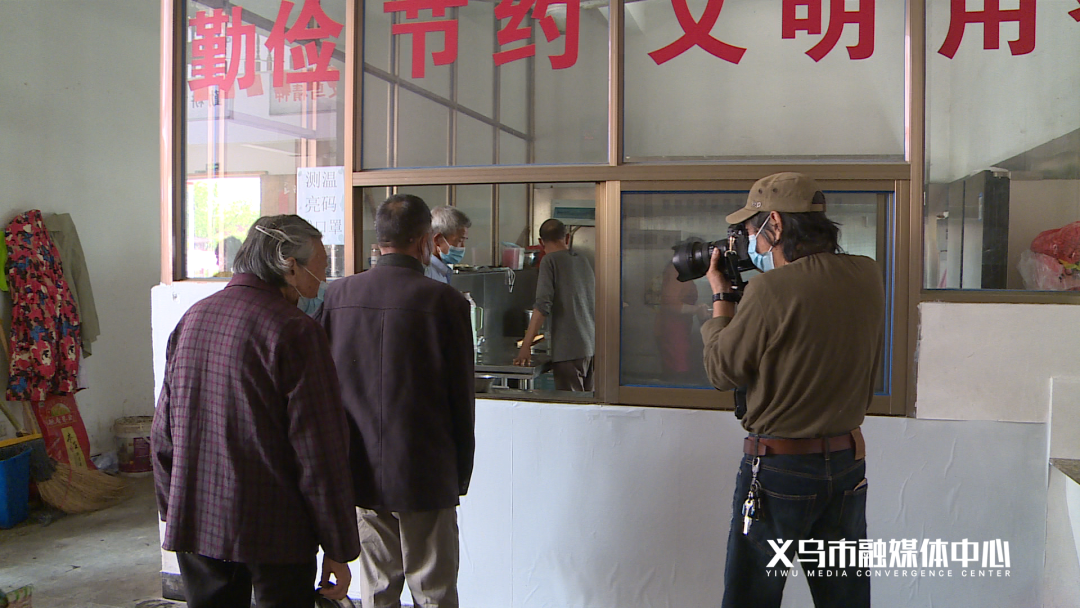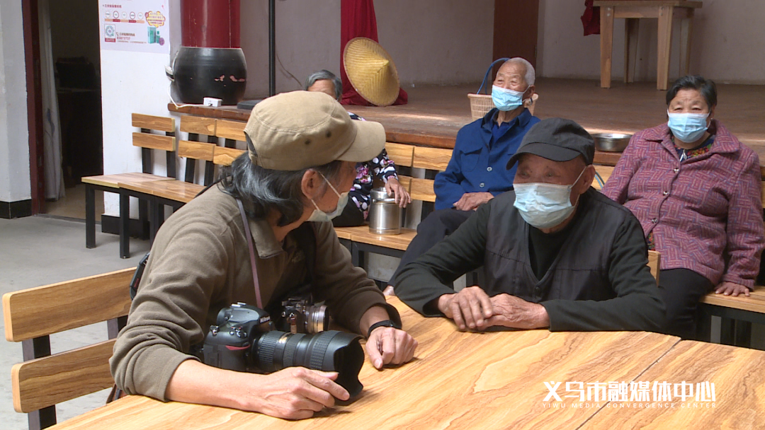 上午10点半,吴秉益背着相机来到佛堂镇梅林村文化礼堂。和往常一样,吴秉益先和等待打饭的老人闲聊几句,然后轻车熟路来到二楼,架好机位。随着一声清脆的快门声,老人排队打饭的场景,就定格在了吴秉益的相机里。