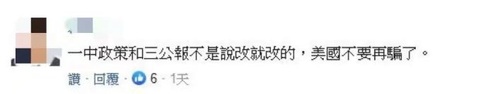当时就有台湾网友在社交媒体留言表示,“台湾人民被政治人物害惨了”、“美国真好心,不把台湾推入战火死不休!”↓