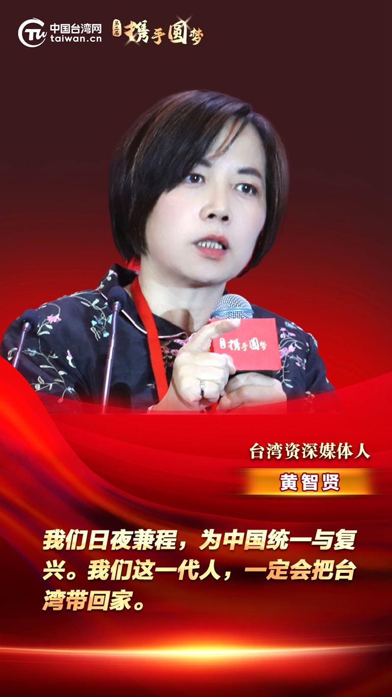 第二届“携手圆梦——两岸同胞交流研讨活动”7日在北京开幕。台湾资深媒体人黄智贤在主题演讲时表示,我们日夜兼程,为中国统一与复兴。我们这一代人,一定会把台湾带回家。