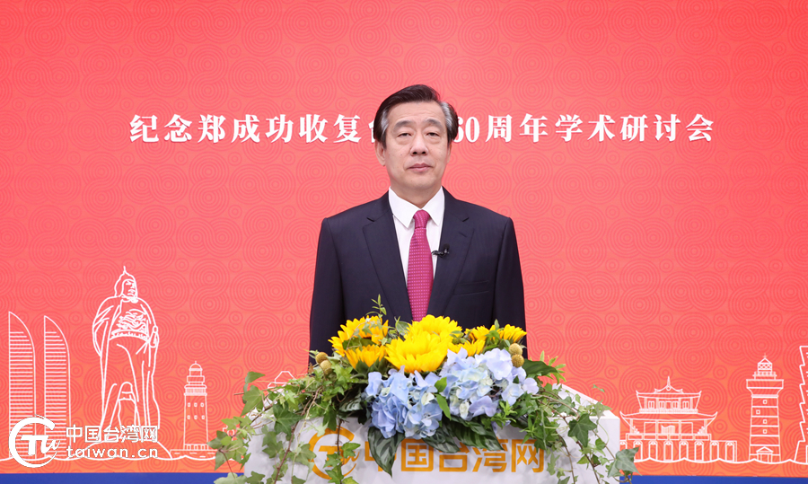 在海峡两岸隆重纪念伟大的民族英雄郑成功驱逐荷兰殖民者、收复祖国宝岛台湾360周年之际,两岸学术界线下线上集聚一堂,共同纪念郑成功的伟大历史功绩,赓续爱国主义传统,共同推动两岸关系和平发展、推进祖国完全统一,具有重要意义。我谨代表中共中央台办、国务院台办,对研讨会的召开表示热烈祝贺,向出席会议的各位嘉宾、专家学者致以诚挚问候!