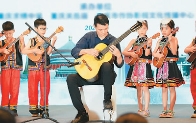 图为两岸师生一同在本届夏令营闭幕式上表演节目。