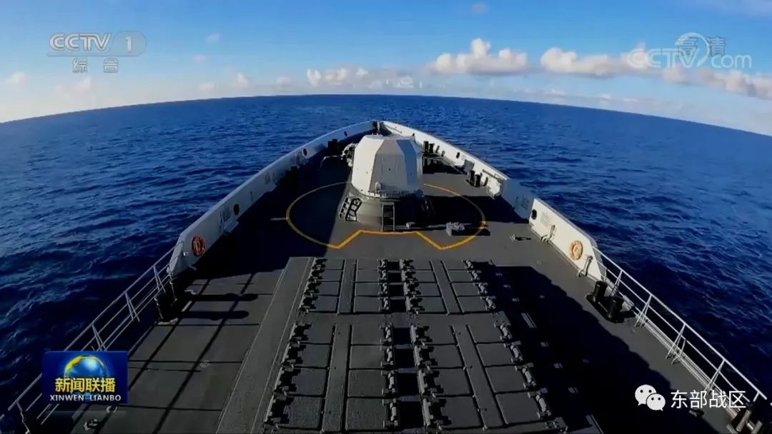 10余艘驱护舰连续位台岛周边海域展开,实施联合封控行动,对火力试射区域进行扫海警戒,配合友邻兵力进行侦察引导。(来源|央视新闻)