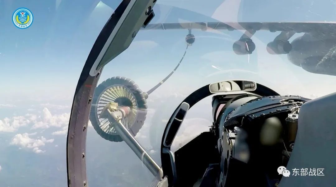 行动中,支援保障兵力与空中作战兵力密切协同,保证战斗机长时在空、持续封控。某新型加油机根据作战支援需求,在预定空域建立加油阵位,做好送油准备。两架战斗机根据油量规划,按照既定航线飞抵加油阵位,受油顺利完成后,迅速返回行动区域,继续执行联合封控任务。