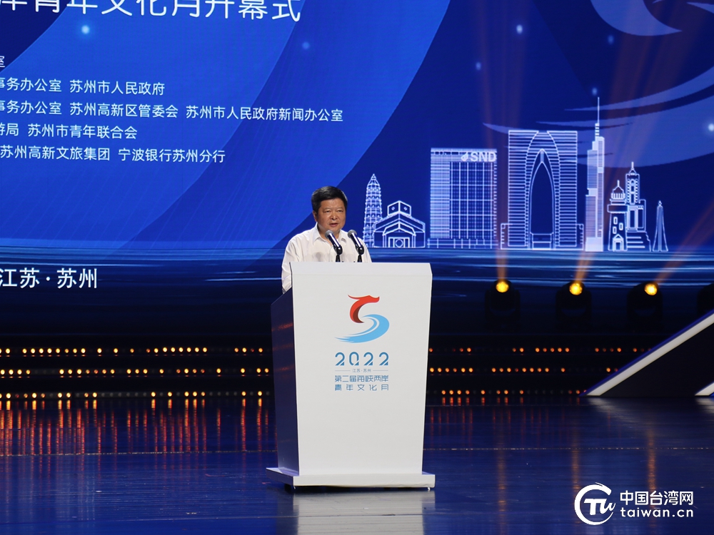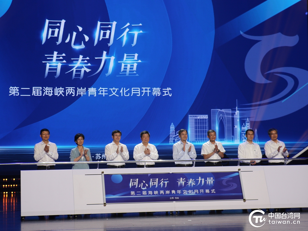 中国台湾网8月19日苏州讯 (记者 张玲)8月19日,以“同心同行 青春力量”为主题的第二届海峡两岸青年文化月在江苏苏州正式开幕。中共中央台办、国务院台办副主任龙明彪,江苏省委常委、统战部部长惠建林,江苏省委常委、苏州市委书记曹路宝出席,苏州市委副书记、市长吴庆文出席开幕式。东吴大学校长潘维大,文化大学中山学术研究所所长、台湾大学新闻研究所兼任教授周阳山视频致辞,200多名两岸青年受邀参加开幕式及后续活动。