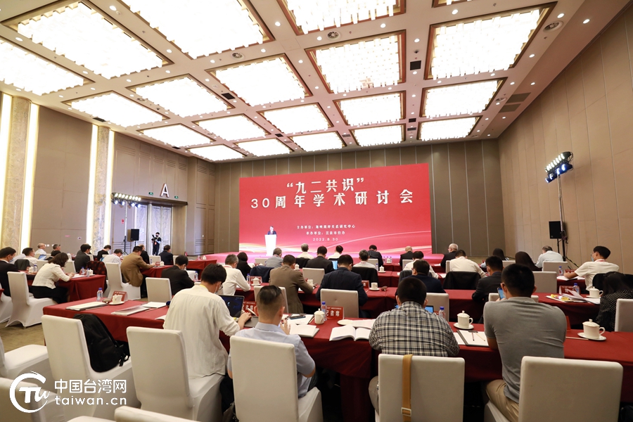中国台湾网8月31日讯 (记者 尹赛楠 张玲)“重温历史、巩固基础、开创未来。”8月30日,“九二共识”30周年学术研讨会在北京举行。“九二共识”达成亲历者、两岸专家学者等60余人以线上线下相结合方式参会,与会学者围绕会议主题、议题深入交流研讨,广泛集智聚力,激荡思想火花,取得积极成果,形成重要共识。