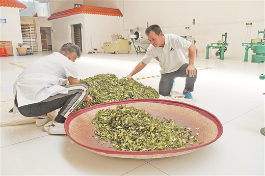 金秋九月,正逢秋茶收获之际。广西润桓农业发展有限公司董事长杨旻伦正在生产车间指导徒弟如何制茶,他捧起摇青机摇好的茶叶闻了闻:“可以了,就是这个味道!”
