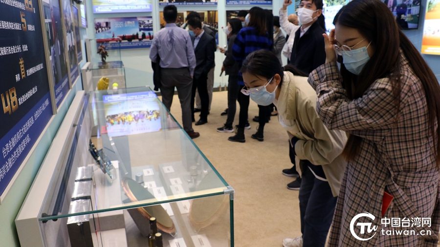 十年来,大陆方面秉持“两岸一家亲”理念,深化两岸融合发展,不断完善保障台胞在大陆享受同等待遇的制度和政策。图为参展观众仔细浏览相关展品。(中国台湾网 张玲 摄)