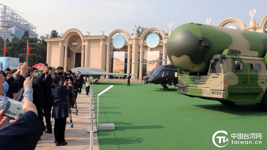 坚决遏制“台独”分裂,维护和平统一前景。有针对性地开展对台军事演训,宣布对“台独”顽固分子依法实施惩戒,充分展现遏制“台独”分裂决心、意志和能力。图为观众纷纷“围观”、拍摄东风41弹道导弹。(中国台湾网 张玲 摄)